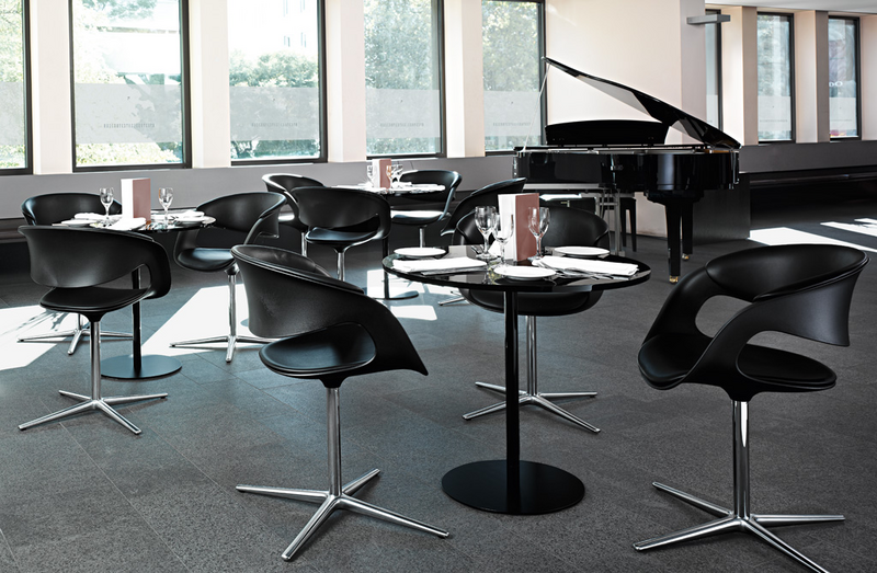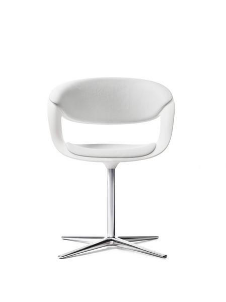 The next generation. The bucket seat Lox reflects the zeitgeist. The clear silhouette with its flowing lines is pleasantly inviting: sculptural in shape, minimalist in materials, comfortable to hold. On the outside, the sweeping bucket back. Inside, the seats and the back padding for comfort. Whether wertig in leather or colorful in fabric, the pads individuate lifestyle. An elegant all-rounder - for lounging and dining, conferencing and Contract. On the four-leg or a tubular steel Lox rotates smoothly. Welcome in the future.