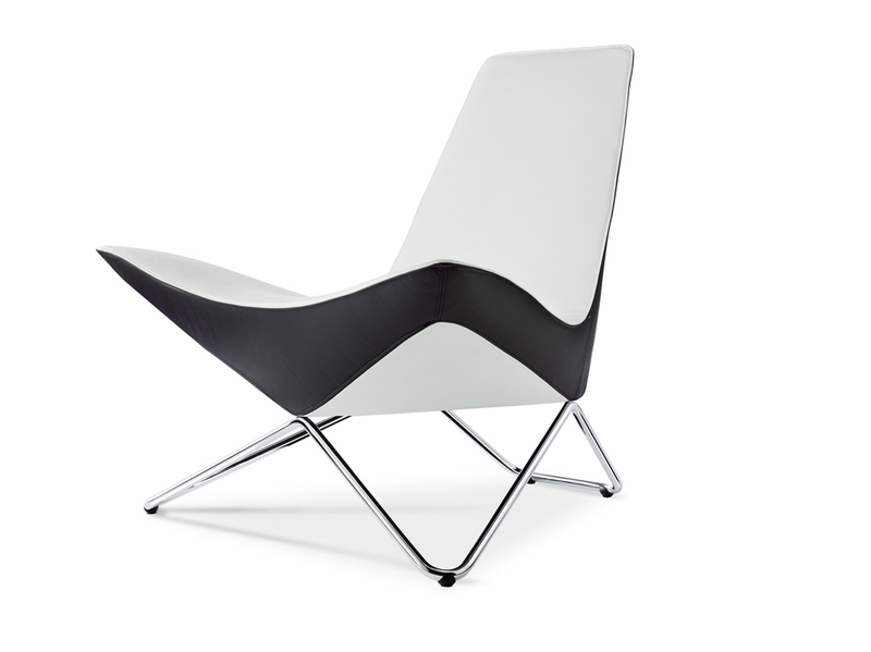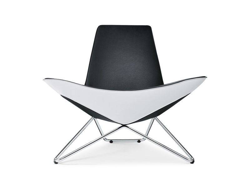 MYchair is the first chair designed by Ben van Berkel / UNStudio and is a real architect’s chair. All the details of the chair are considered for their spatial effects. In the case of Ben van Berkel this spatial awareness is connected to his idea of the ‘after image’, referring to the capacity of three-dimensional objects to produce many different impressions when seen from different angles. These continuously changing silhouettes result in a kaleidoscopic experience, achieved in the MYchair by the faceted arrangement of the soft elements, the inward and outward curves of the chrome frame and the duo-tones of the upholstering. The facet shapes of the soft part of the chair are echoed in the curves of the frame supporting it; the bottom is reflected in the sides; and the room itself is reflected in the polished chrome of the support frame.