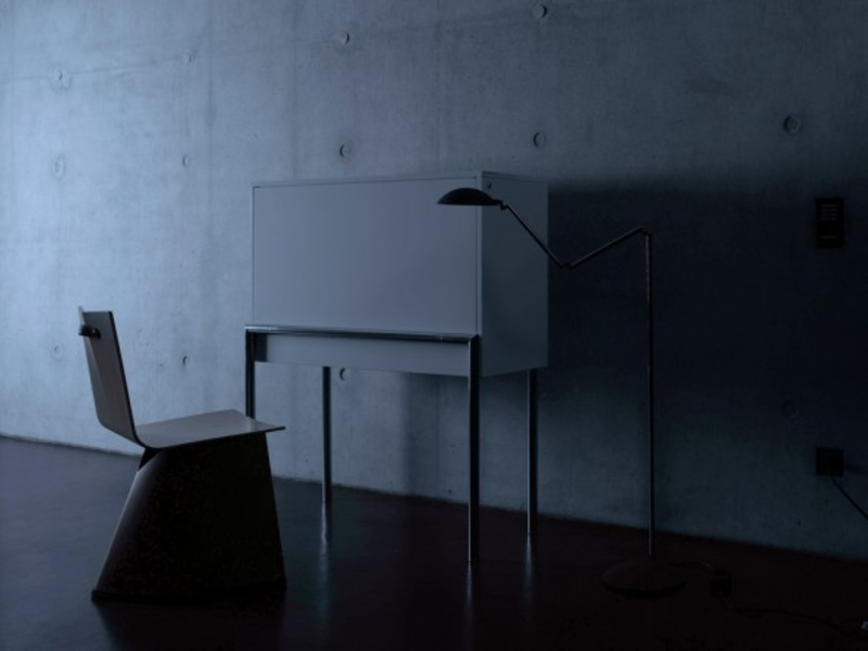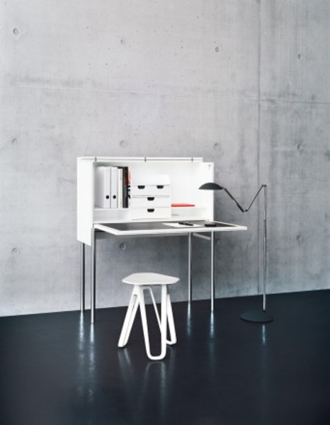 Base and reflector matte black or white textured finish, or completely chromium-plated. Rods and joints in chrome. Fully adjustable wireless joints allow for a great number of lighting positions, reflector