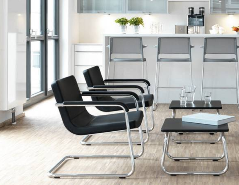The design of the Cura chair adds refreshing touches to the traditional cantilever chair. It is lightweight and welcomes people, inviting them to communicate. The design allows Cura to be placed in all work areas bledning naturally with the environement.