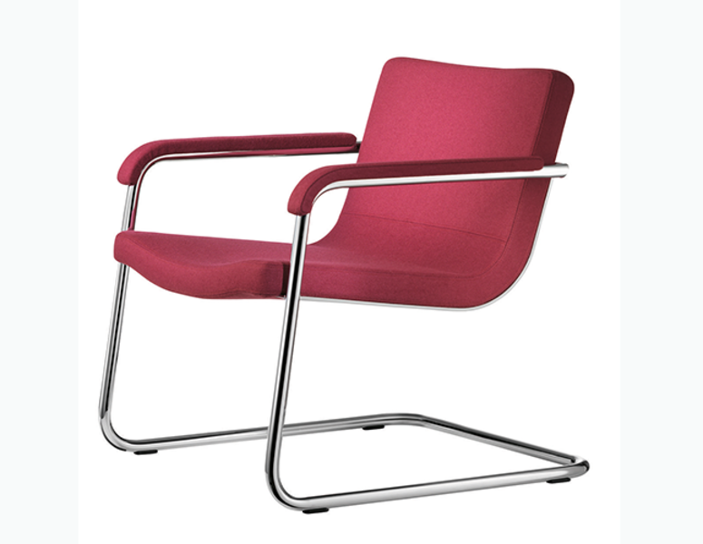 Wilkhahn describes Cura as “high-calibre, cantilever lounge chair.” It’s adds a nice cozy feeling to every interior. In addition to the chair is available low table that complements the clear lines of Cura.