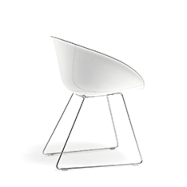 Gliss has a cozy and ergonomic shape which takes its inspiration from iconic chairs of the Fifties, featuring by the distinctive element of the hole in the shell.