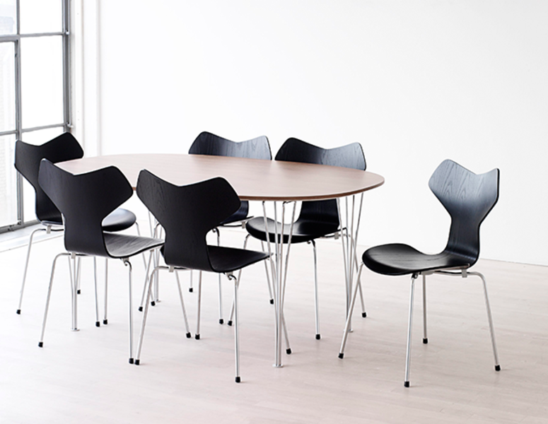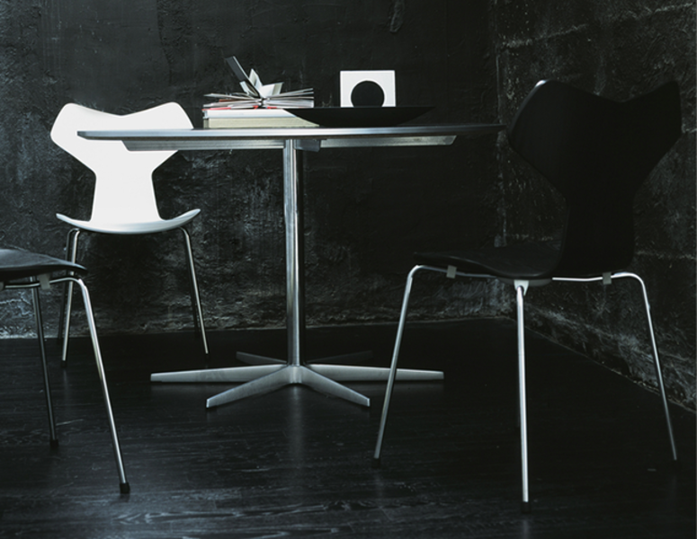 Grand Prix’ first appearance was during the Designers’ Spring Exhibition at the Danish Museum of Art & Design and later at the Triennale in Milan, where it was named receiving the finest distinction – Grand Prix. Offered in wooden and steel base.
