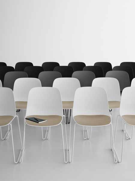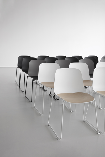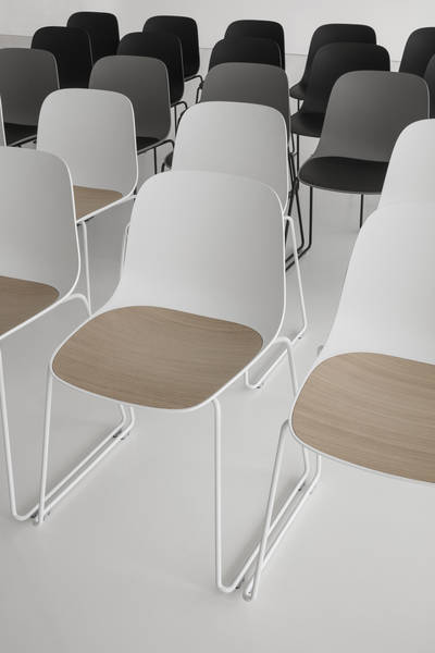 And from the meeting of Antti Kotilainen and Lapalma SEELA is born, a chair and a manifesto of beauty, so spontaneous is the contact between wood, polypropylene and steel. The sinuous polypropylene shell rests on the very light bases, which in turn continues into the seat without interruptions. The insert, integrated into the seat and removable by 4 screws, is easily interchangeable and can be made, in addition to wood, in polyurethane to play with a mix of colors and allow the positioning of the seat in outdoor environments. The entire chair can be upholstered, featuring the insert, if desired, with a different material. The extreme versatility not only allows you to configure a product that matches your needs as closely as possible, but also to modify some details over the years, maximizing its life cycle and duration over time.