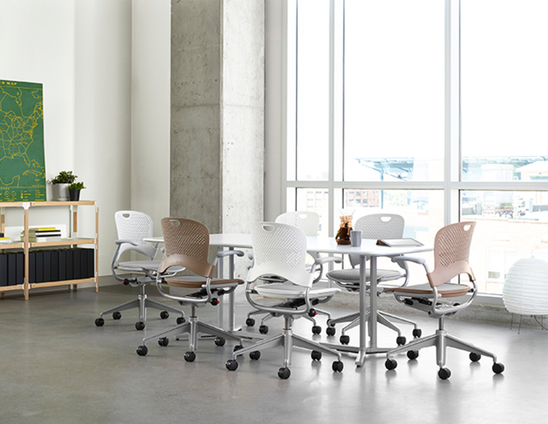 Caper chair is the result of Herman Miller’s extensive research on secondary seating that aimed to provide mobility, multipurpose use, easy adjustability and comfort.