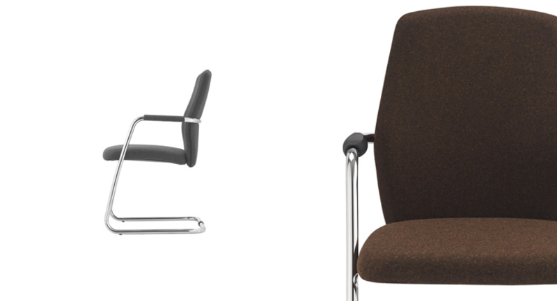 An ideal seat in any environment, perfect in waiting and passage areas. Uni welcomes the visitor with an enveloping and functional comfort. The sled frame in high-strength steel tube integrates the armrests that can be coordinated with the padded back and seat, available in different finishes including fabrics and leathers. The collection is proposed in two versions, with medium back and high back.