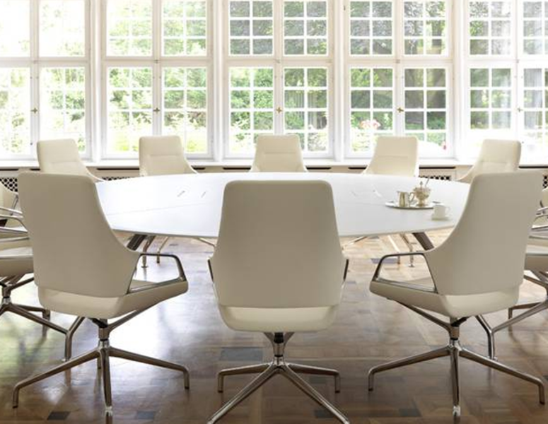 The Graph table reflects the design of the Graph conference chairs – a seamless connection mirrored in the chair’s structure. The table is offered as a round table and oval shape. Sizes for the table range from 120 by 120 to 540 by 230 centimetres and can have up to 16 people. Graph is made with high quality materials and is a stylish solution for conferencing areas.