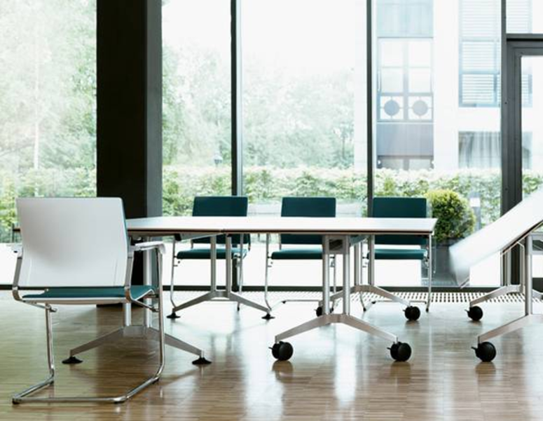 Timetable e без съмнение най-гъвкавото решение в колекцията на експерта за конферентно обзавеждане Wilkhahn. Масата има иновативен механизъм, който позволява лесно сгъване на краката едновременно с плота в компактна позиция.