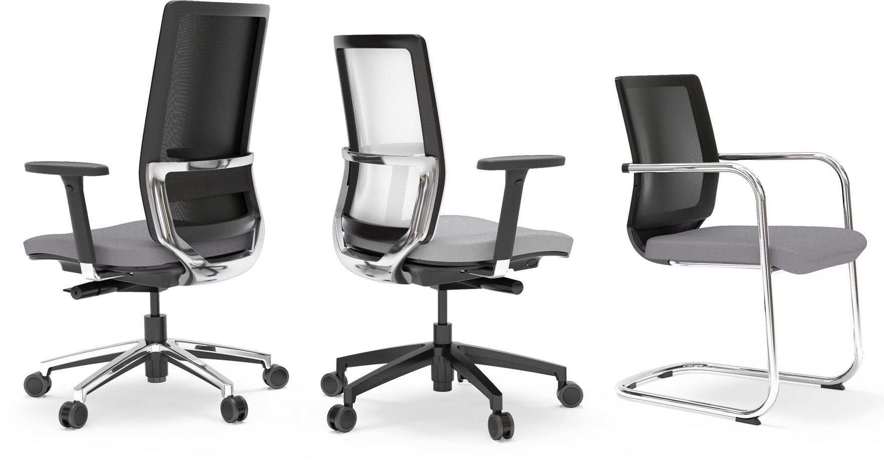 The main focus of relaxation is the chair back with a structure of aluminium and tautly stretched mesh, 3D mesh or upholstered foam which, along with the seat of the chair, provide the user with a feeling of relaxation. Furthermore, for making adjustments between the seat and the back, the user has 2 options: Synchro Motion with option to add seat adjustment in depth or Trasla mechanism.