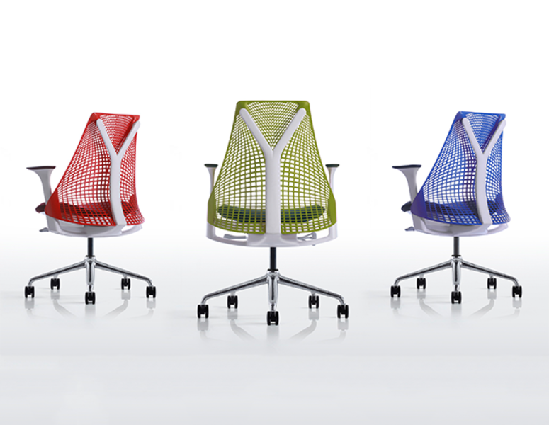 The Sayl chair is one of the most recent addition to the collection of work chairs of Herman Miller created by Yves Behar. The chair’s suspension has the fewest possible contact with the Y-shaped frame where the sitters needs support for their spine and allows the sitter to be enfolded by the suspension net of the chair without obstacles.