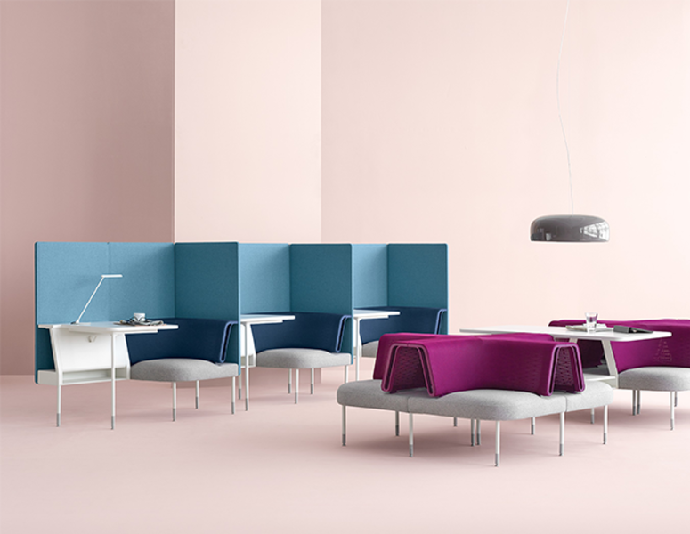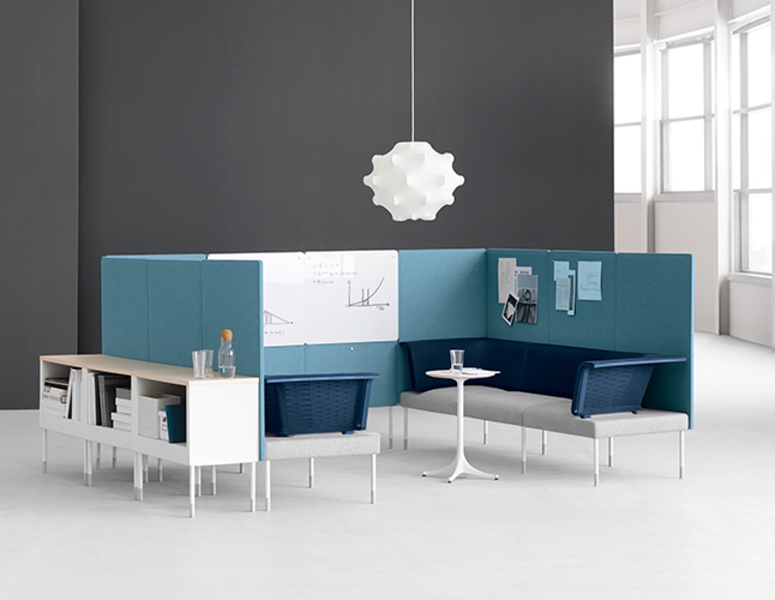 Public Office Landscape is a modular system that can be assembled to suit an organization’s needs. Configurations of the different components form group areas that enable collaboration in close to work spaces.