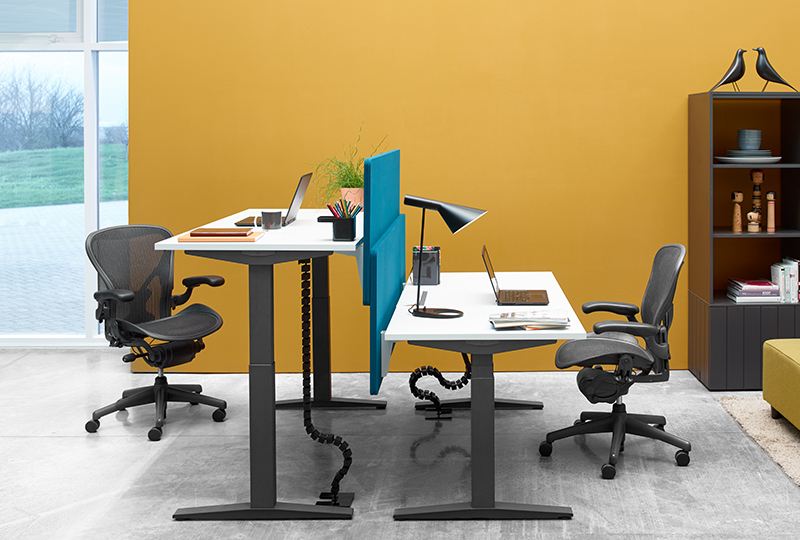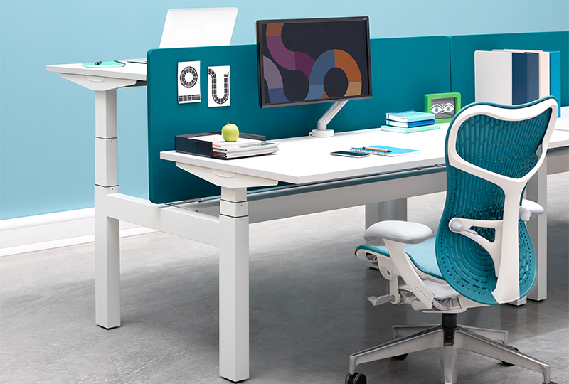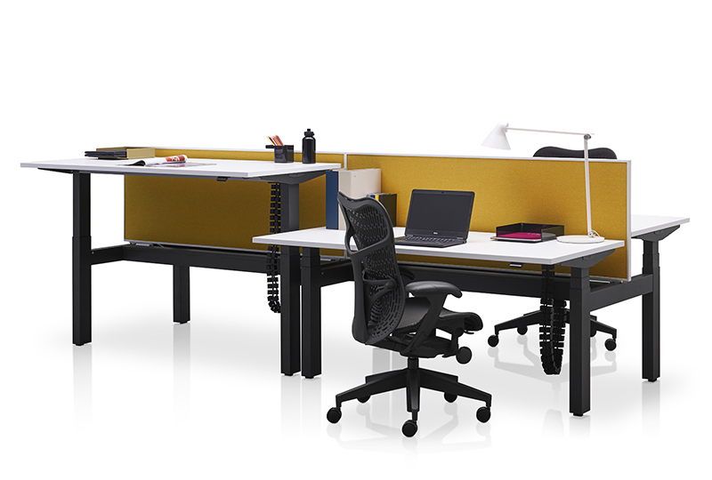Ratio encourages users to move and change their posture throughout the working day. It is available with two kinds of electric height adjustment, including programmable pre-sets for use at assigned desks; this means a user can adjust their desk to exactly the right height for them at the touch of a button. Manual height adjustment is also available.