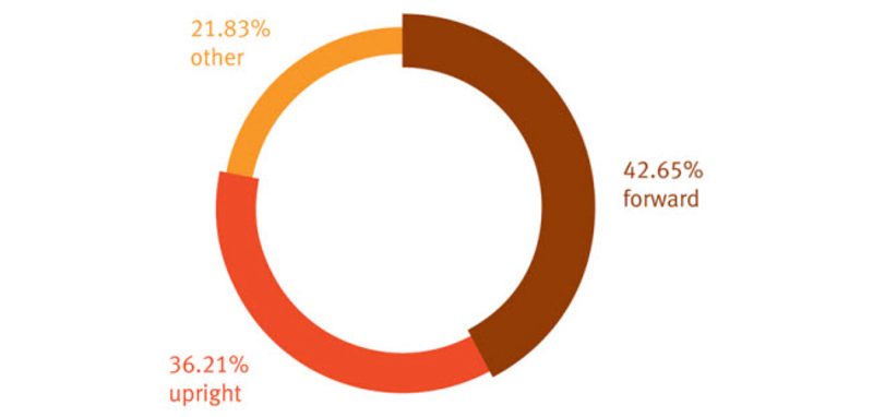In the study cited earlier, (Dowell, Green, and Yuan, 2001) researchers found that three-quarters of those studied assumed an upright or forward-leaning posture while performing computer-related tasks. A recent investigation recreated this research with 33 subjects. With a conventional surface that provided no movement, the results were the same as the earlier study—75 percent of the time the chair’s tilt was not engaged.