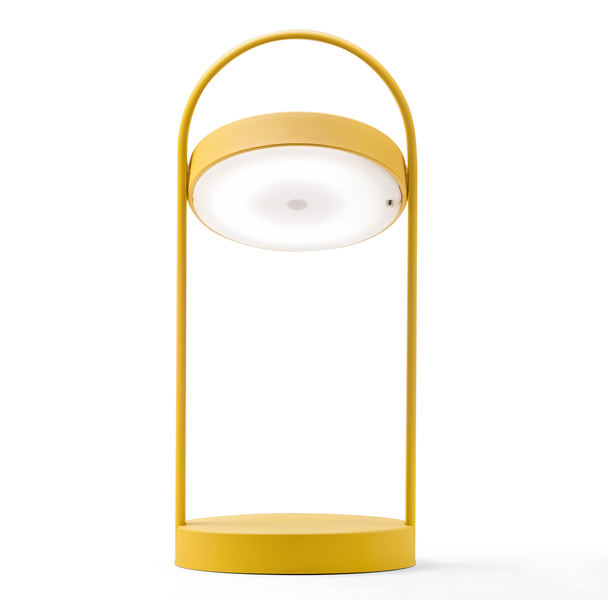 Giravolta is a wireless lighting distinguished by a contemporary design and suitable for outdoor environments. Two discs in plastic material, the base and the LED diffuser which rotates 360 degrees and directs the light, are surrounded by an arc made in extruded aluminium to create a practical handle. The luminaire incorporates the LED board, the lithium battery, the micro USB device for recharge and the power button. A magnet in the base as optional allows the fixing of the lighting on metal surfaces, even wall.