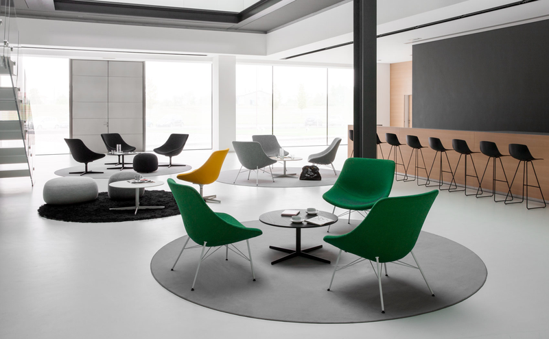 There are moments in the day that go beyond the right angle and seek the sinuosity of an enveloping line that supports the body, protects it, relaxes it. These are the moments of the AUKI armchair. As in a shell, the curvature opens delicately, giving shape to a barely hinted armrest. Headrest and stool complete the absolute comfort and transform the seat into an elegant chaise-longue. The wide choice of bases, which support two types of coffee tables, square and round, enhances the perfect versatility of this armchair.