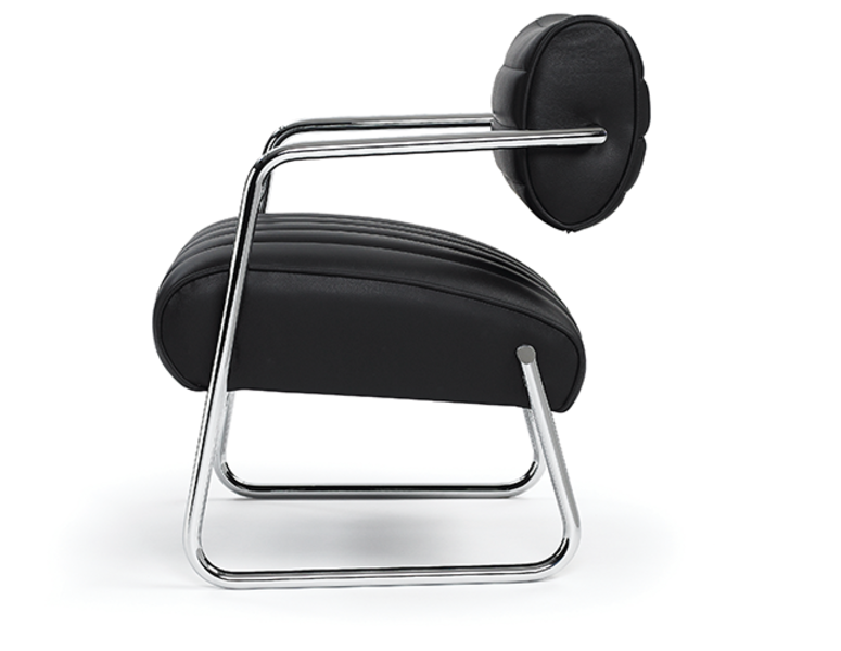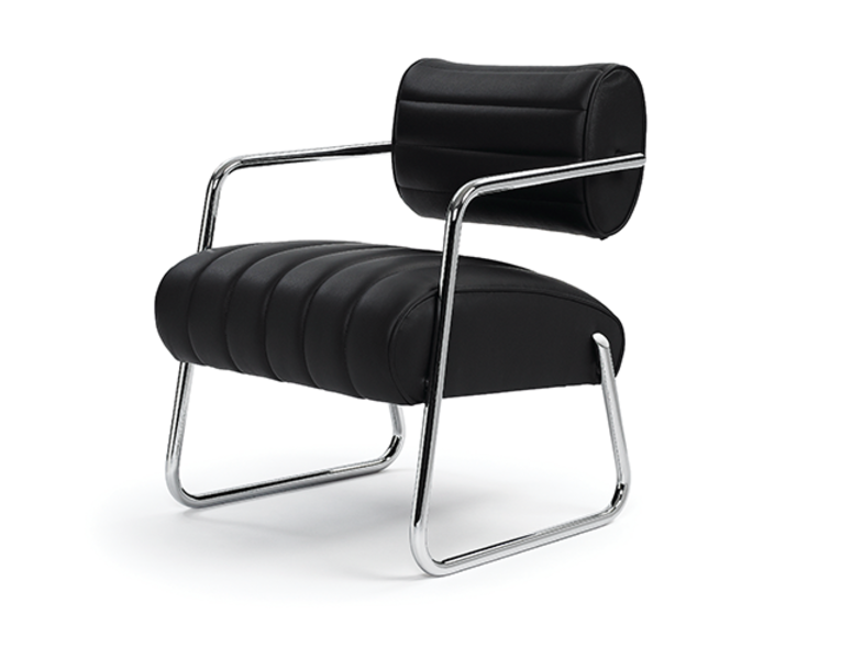 Bonaparte combines upholstered chair with steel tube construction resulting in an armchair that adds openness and convenience to every interior. Eileen Gray used Bonaparte as her desk chair in her home in Paris.