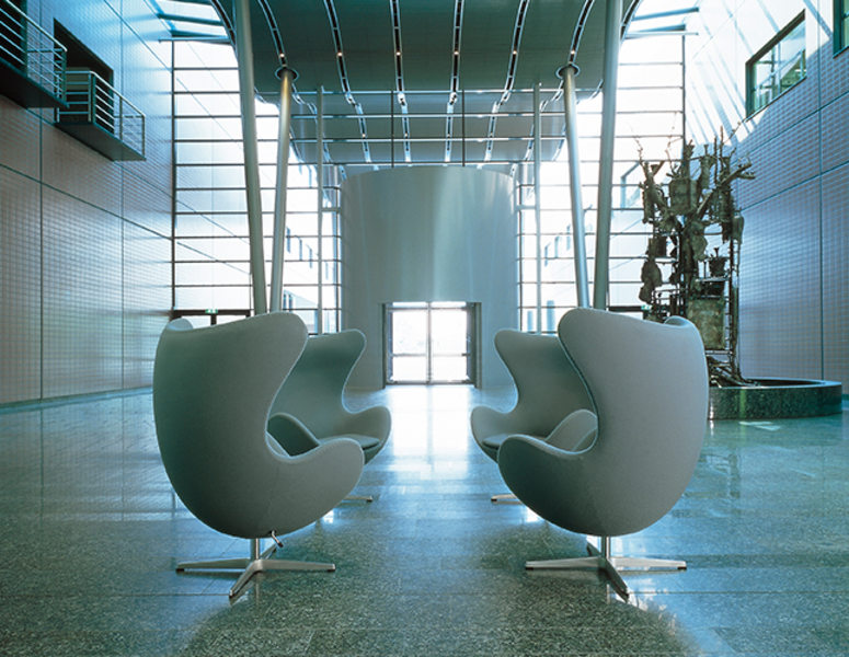 The Egg chair is a classic icon designed by Arne Jacobsen for the Royal Hotel, in Copenhagen. The unique design offers privacy and makes it a perfect solution for lounge areas and home interiors.