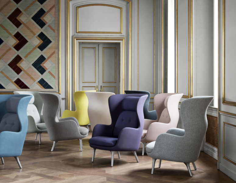 От пръв поглед креслото Ro обещава комфорт и уединение, опаковани в елегантен дизайн. Подобно на столовете Egg и Swan от Fritz Hansen обвивката е създадена от твърда полиуретанова пяна с краища подсилени със стъклени влакна.