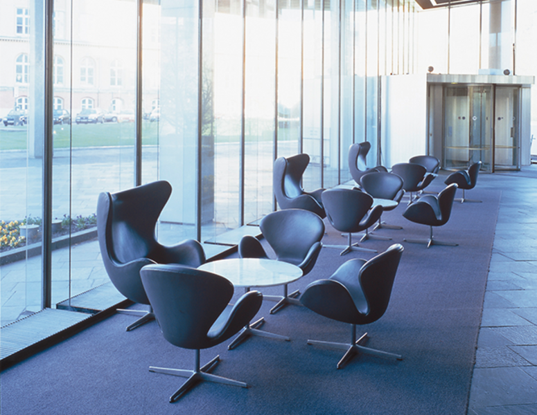 The Swan chair is a classic icon designed by Arne Jacobsen for the Royal Hotel, in Copenhagen together with the Egg Chair. An innovative design that offered curved lines instead of the straight lines typical for the period.