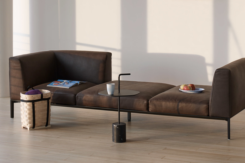 JEY has two lives, two personalities, two materials, two heights and two colors. It is a small table-sculpture, with a marble or concrete base, and a tubular stem that flowers on the top shaped in various geometric shapes and ends in a handle.