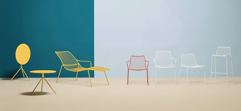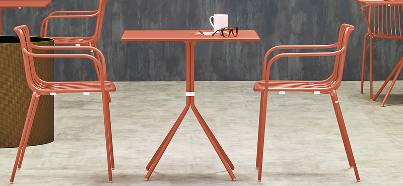 Nolita is a family of outdoor seatings which recalls the origins of a historic course started by Mario Pedrali in 1963 with his first metal garden chairs.