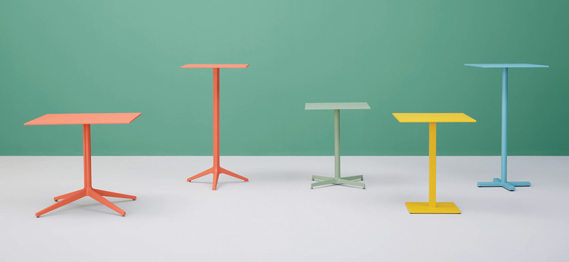 Table with three aluminium legs and extruded aluminium column, available combined with tops of different sizes and finishes.