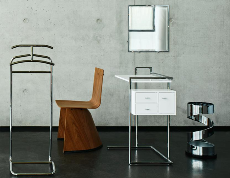 Eileen Gray had the unique ability to combine ellegance and functionality into a beautiful form. Castellar was designed for Gray’s summer home E1027. The additional feature of the mirror is the mounted section that allows for a profile view.