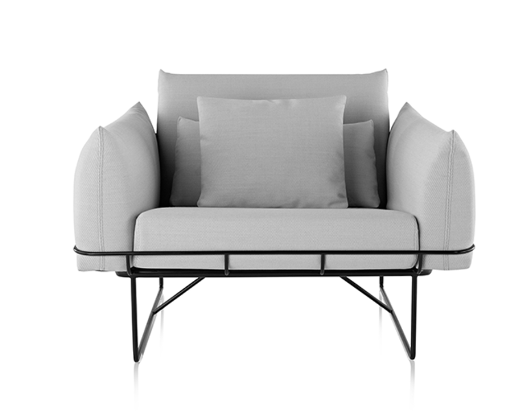 Wireframe is light weight and has various sizes. The external structure is made of steel wire that frames the cushions.