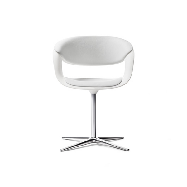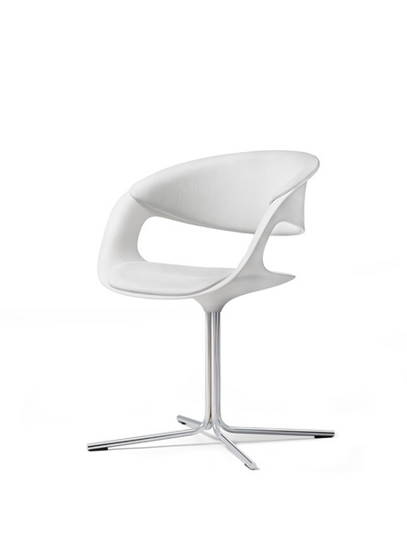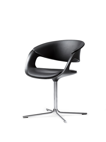 The next generation. The bucket seat Lox reflects the zeitgeist. The clear silhouette with its flowing lines is pleasantly inviting: sculptural in shape, minimalist in materials, comfortable to hold. On the outside, the sweeping bucket back. Inside, the seats and the back padding for comfort. Whether wertig in leather or colorful in fabric, the pads individuate lifestyle. An elegant all-rounder - for lounging and dining, conferencing and Contract. On the four-leg or a tubular steel Lox rotates smoothly. Welcome in the future.