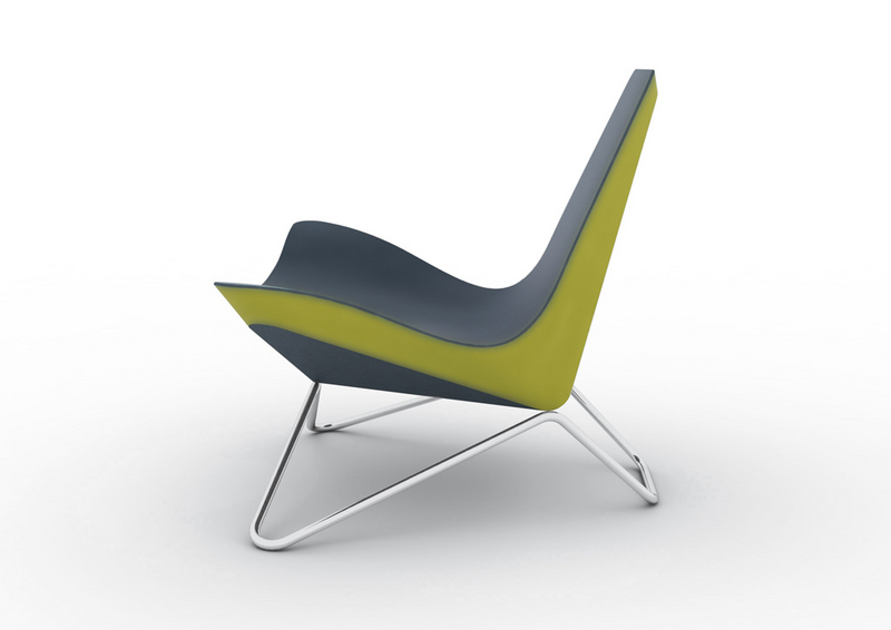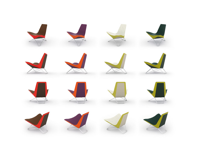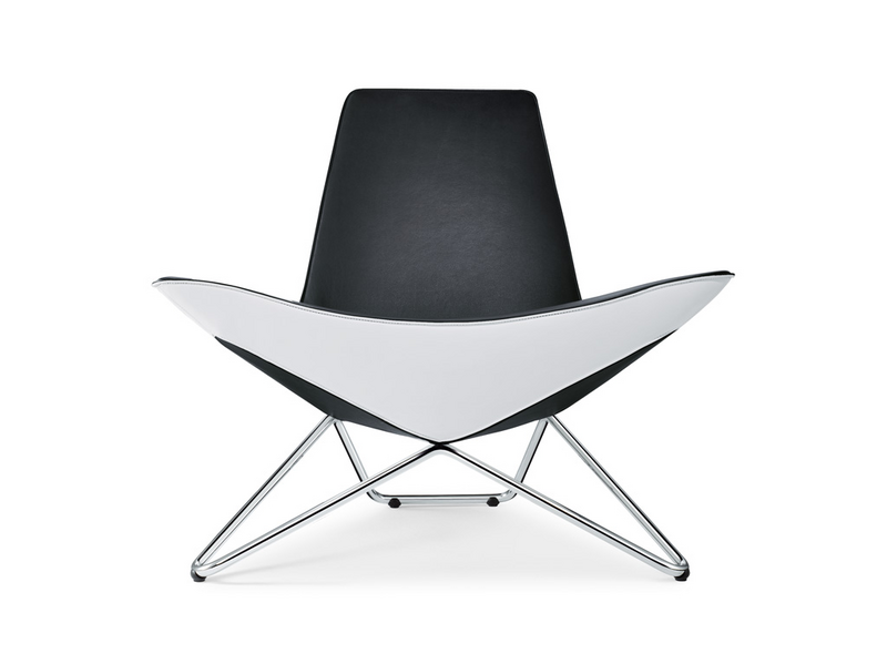 MYchair is the first chair designed by Ben van Berkel / UNStudio and is a real architect’s chair. All the details of the chair are considered for their spatial effects. In the case of Ben van Berkel this spatial awareness is connected to his idea of the ‘after image’, referring to the capacity of three-dimensional objects to produce many different impressions when seen from different angles. These continuously changing silhouettes result in a kaleidoscopic experience, achieved in the MYchair by the faceted arrangement of the soft elements, the inward and outward curves of the chrome frame and the duo-tones of the upholstering. The facet shapes of the soft part of the chair are echoed in the curves of the frame supporting it; the bottom is reflected in the sides; and the room itself is reflected in the polished chrome of the support frame.