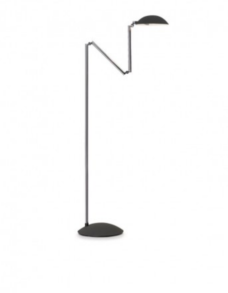 Base and reflector matte black or white textured finish, or completely chromium-plated. Rods and joints in chrome. Fully adjustable wireless joints allow for a great number of lighting positions, reflector