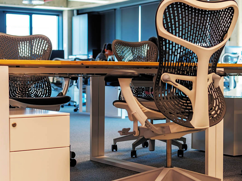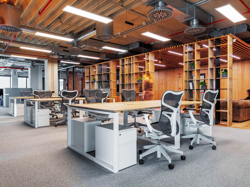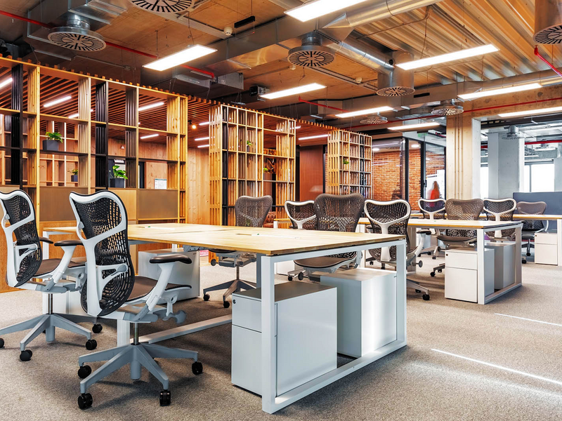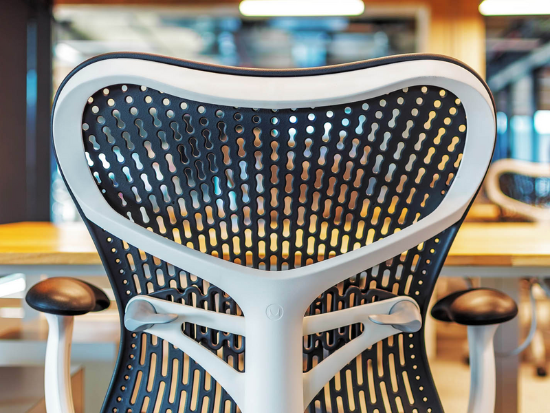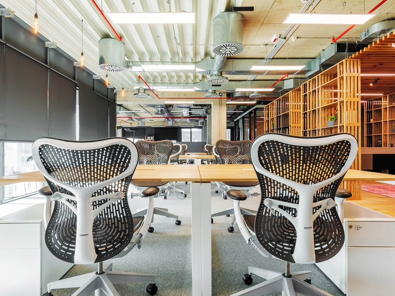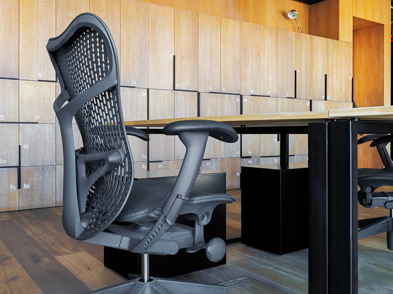 The design of SumUp's office is in industrial style, and the open plan makes it extremely bright and spacious. The choice of chair is the Mirra 2 model of the Herman Miller brand. It fits perfectly with the creative look of the workspace and contributes to a healthy work environment through all its ergonomic functions and settings. The solution for the personal belongings of the employees is the small and comfortable containers under the desk of the Italian manufacturer Dieffebi, which are combined with the color of the frame of the chair.