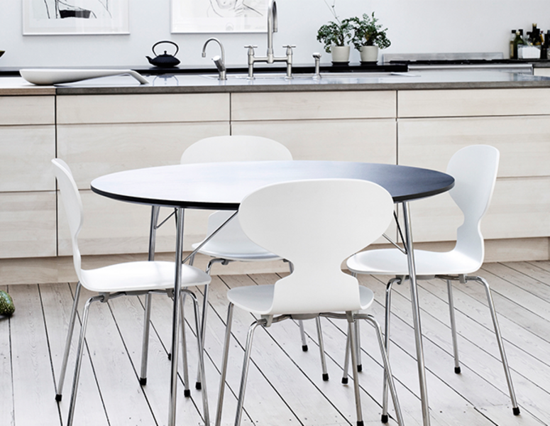 Ant е създаден от Arne Jacobsen за столовата в компанията Novo Nordisk. Мултифункционалният стол има минималистичен дизайн с креативна форма, която е изключително удобна.