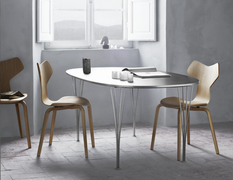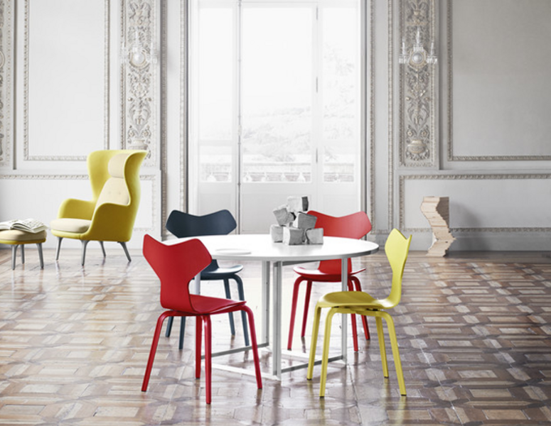 Grand Prix’ first appearance was during the Designers’ Spring Exhibition at the Danish Museum of Art & Design and later at the Triennale in Milan, where it was named receiving the finest distinction – Grand Prix. Offered in wooden and steel base.