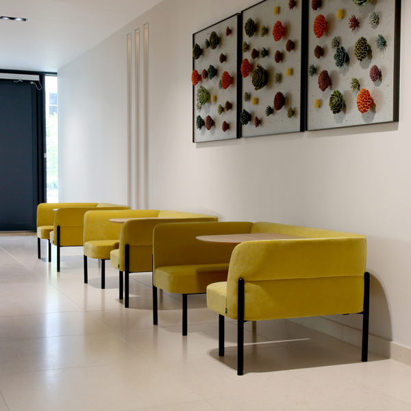 Hue is designed for dividing, creating and utilising awkward space whilst encouraging collaboration at a higher posture. As a luxurious retreat for group or individual work, Hue is perfect for use in narrow spaces, and is ideally suited for pre and post meeting situations.
