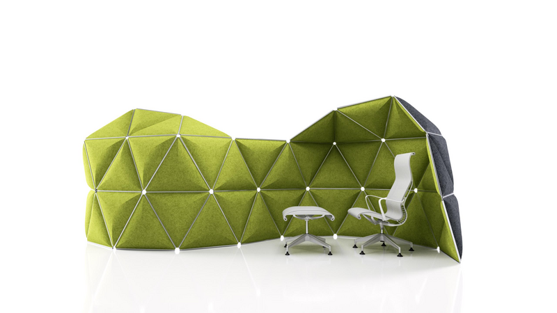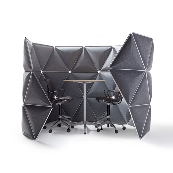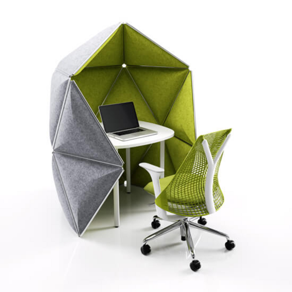 Kivo is a solution for the constantly evolving work place. The system is designed so that new places can be easily assembled or moved according to the needs of the office environment. Kivo’s triangle shape creates the feeling of simplicity and versatility.