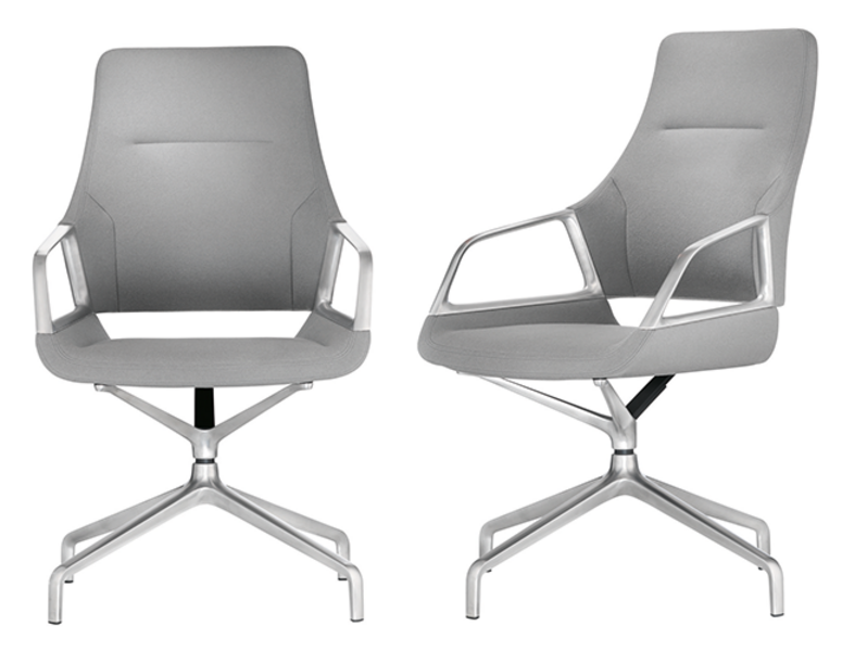 Graph is an elegant and formal conference chair available in two backrest heights. The chair provides great comfort to the sitter due to its three-point support and upholstery. The frame has a base that can be in die-cast aluminium, bright chromium plated or polished.