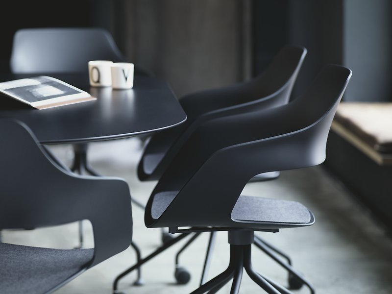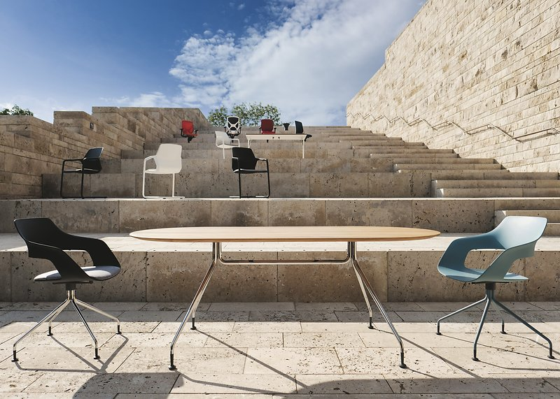 The characteristic shape of the seat and backrest shell mirrors the letters that Occo owes its name to. Viewed from the front, the chair looks like an O and from the side it resembles a C. Four frame types, three types of cushioning and six shell produce a total of 72 variants that respond to virtually all functional and design requirements.