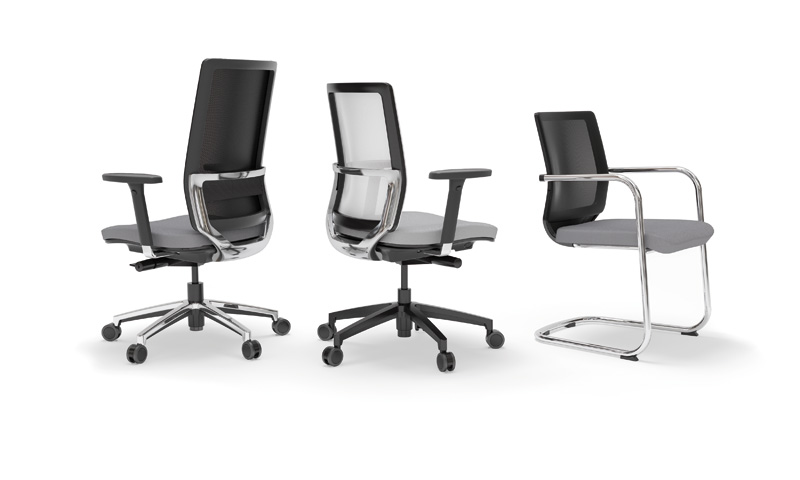 The main focus of relaxation is the chair back with a structure of aluminium and tautly stretched mesh, 3D mesh or upholstered foam which, along with the seat of the chair, provide the user with a feeling of relaxation. Furthermore, for making adjustments between the seat and the back, the user has 2 options: Synchro Motion with option to add seat adjustment in depth or Trasla mechanism.