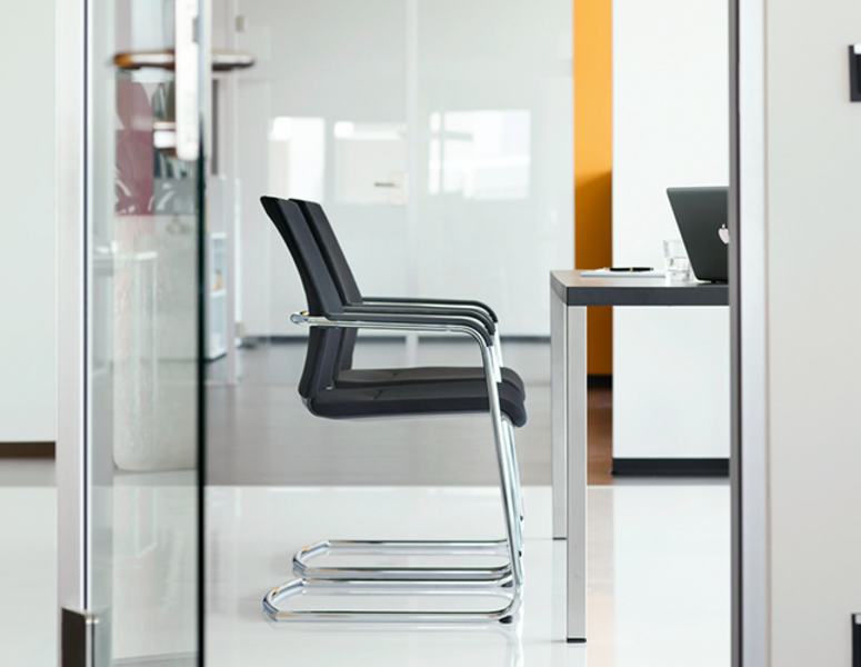 For ultimate comfort, two knobs allow the user to change the adjustments according to personal preferences. The series are available as work, cantilever and visitor chair. The chair is also available with the backrest heights.