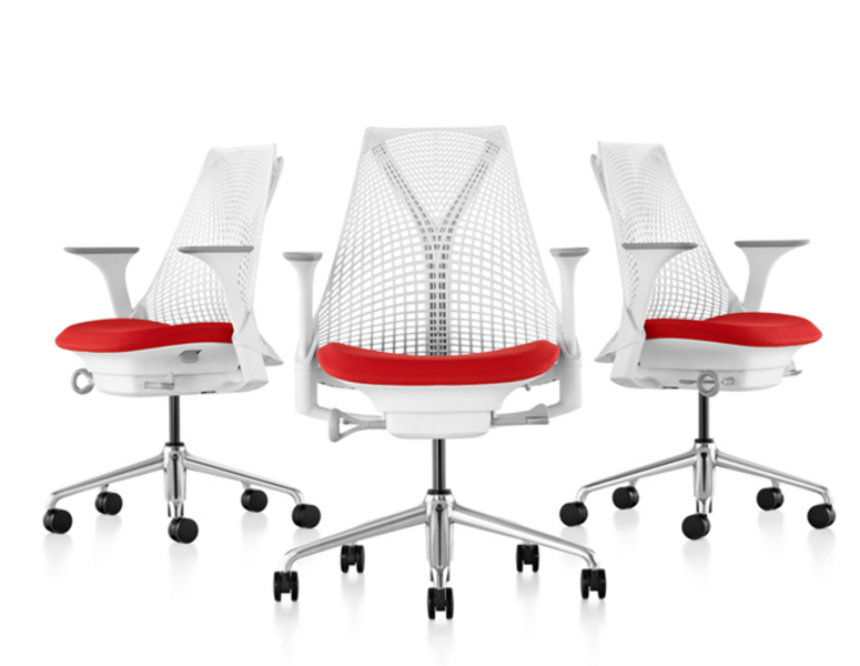 The Sayl chair is one of the most recent addition to the collection of work chairs of Herman Miller created by Yves Behar. The chair’s suspension has the fewest possible contact with the Y-shaped frame where the sitters needs support for their spine and allows the sitter to be enfolded by the suspension net of the chair without obstacles.