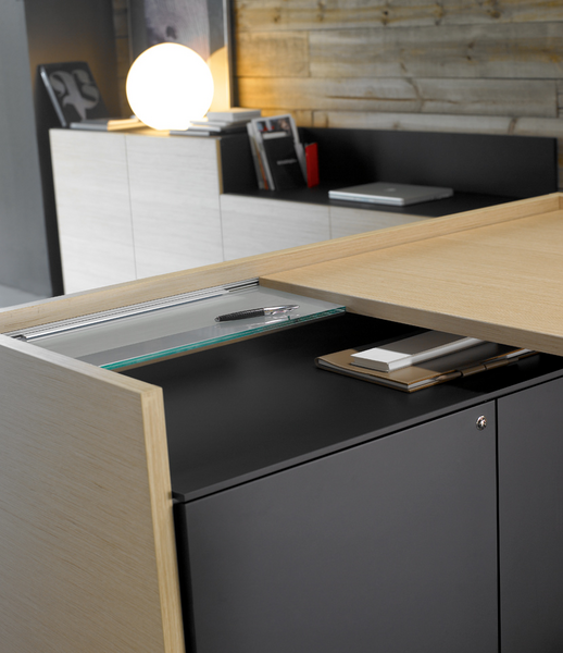 Quorum is the bet of Forma 5 for a style of life. The space is the ideas of the leader. A firm solid structure. Natural Wood finishes that speak of serenity and nobility. The creation of balanced scenarios for the job as a manager and presidency. A middle and an end in itself: the aesthetics and the force.
