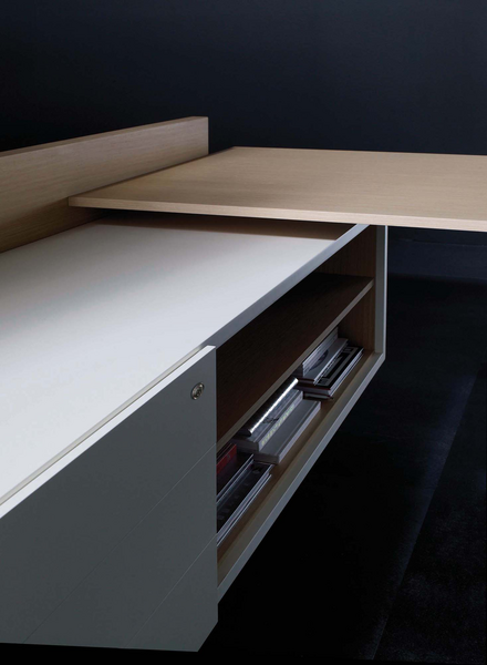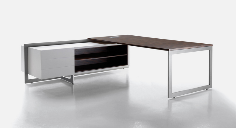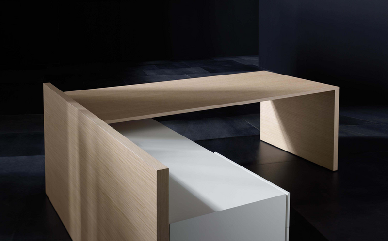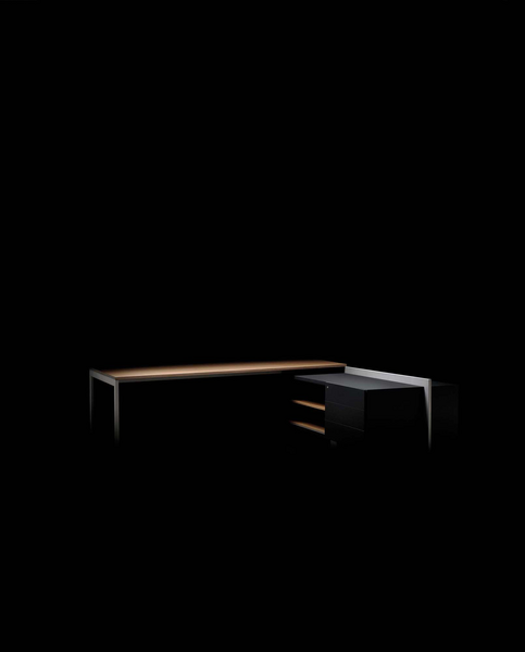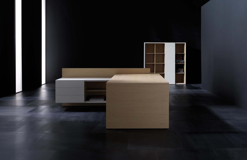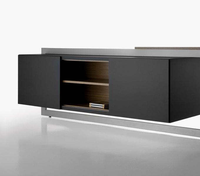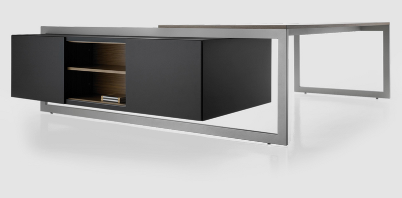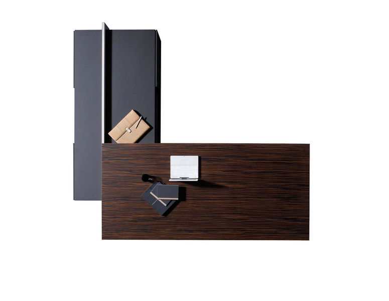 The Vektor range reflects the evolution of traditional executive furniture, moving towards a more up-to-date aesthetic, which is in keeping with new trends in light and avant-garde spaces. The design detail is of importance in the two different styles that form part of this range: an arch-shaped supporting frame with a metal finish and a wall support consisting of a honeycomb-core panel made from the highest quality wood.The design also features an integrated storage system, which is suspended from the frame (both arch-shaped and wall-mounted). The effect created by the suspended storage system adds another distinguishing touch to the design, which has been optimised by and for spatial balance.