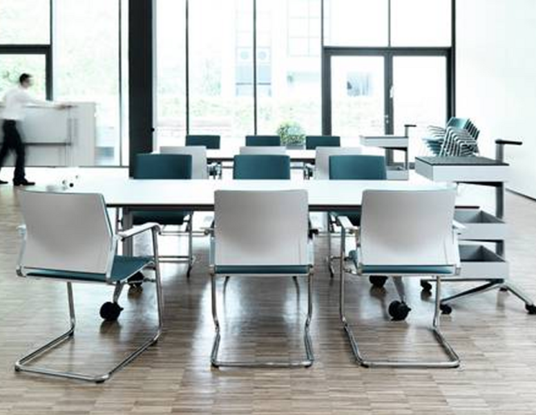 Wilkhahn is “the first and to date only manufacturer worldwide to supply table ranges in a consistent design.” Their portfolio consists of solutions for both static and dynamic configuration in the conference room. This makes integration and adaptability easy and provides the option for versatility for area in the office.