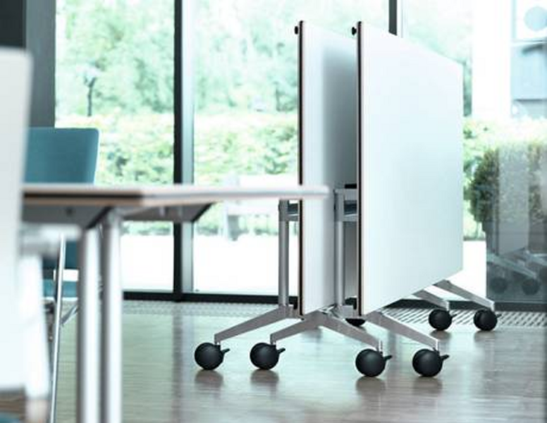 Following the success of Confair, Wilkhahn continued innovating conference solutions with the utilization of space and optimizing of communication with the Timetable series. Timetable’s mechanism is designed so that the top can be folded on its horizontal axis. This allows space to be saved whenever the tables are not in use and extremely easy rearranging of configurations when needed.