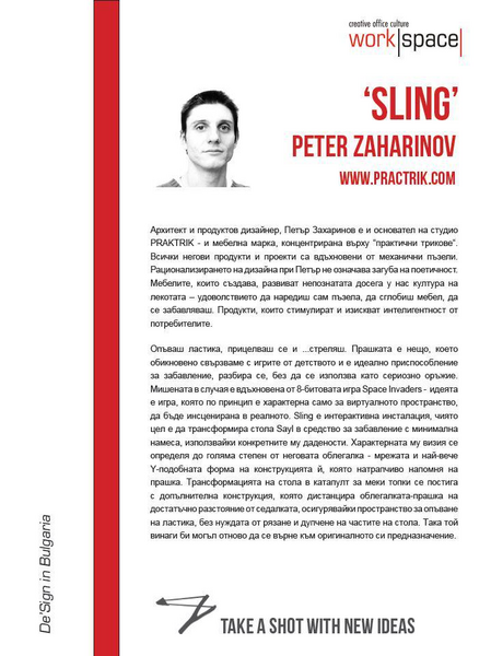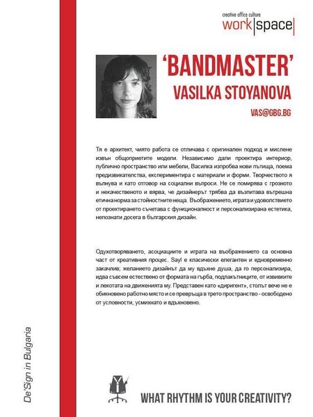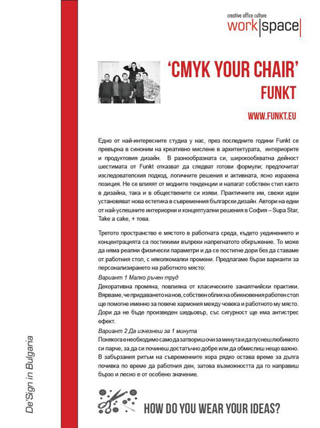 Шоурумът за креативна офис култура, Workspace Bulgaria, отпразнува своя трети рожден ден със събитие на тема „Третото пространство и креативността в офиса“. Многобройните гости на събитието имаха възможност да видят откриването на изложба с 5 дизайнерски инсталации за третото пространство и да чуят лекцията на експерта Mark Catchlove за четирите основни типа креативност и връзката им с „третото пространство“. За доброто настроение този път помогнаха вината на No Man's Land.
