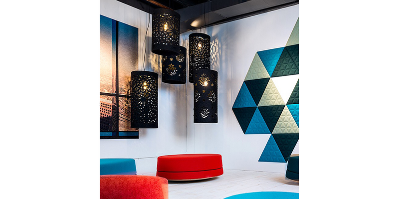 Leather-cutting the felt creates a dramatic space that softens the echoes of shadows and sounds.