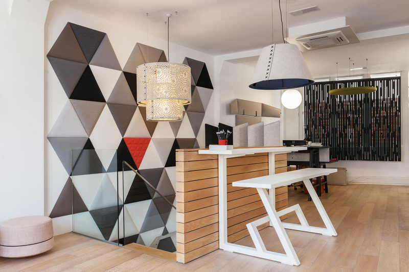 A contemporary take on the Moorish lantern made from BuzziFelt, providing atmosphere to a room while helping improve the acoustics.