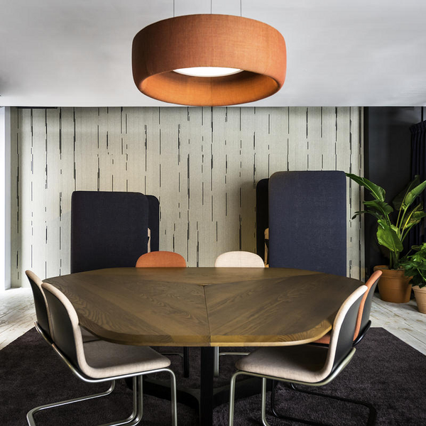 BuzziJet is a simple acoustic pendant light for superior acoustics, designed with happy, healthy workspaces in mind. The aerodynamic design offers sound-absorbing capabilities, delivering acoustic comfort paired with a powerful light output.