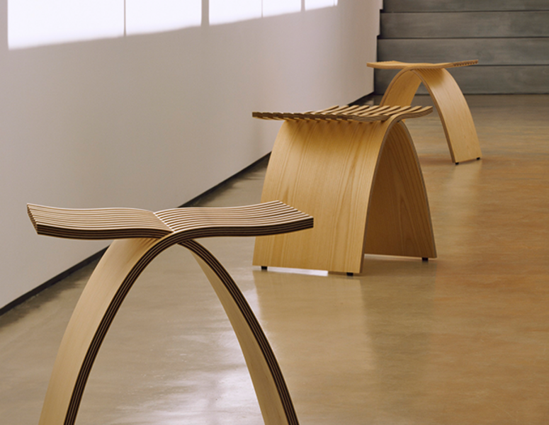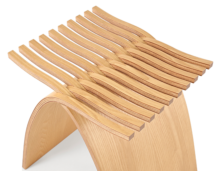 The idea behind the chair came from the designer Carol Catalano’s own entwined fingers that inspired her to create a stable construction with sleek lines. The stool is made from plywood and has both very elegant and innovative look.